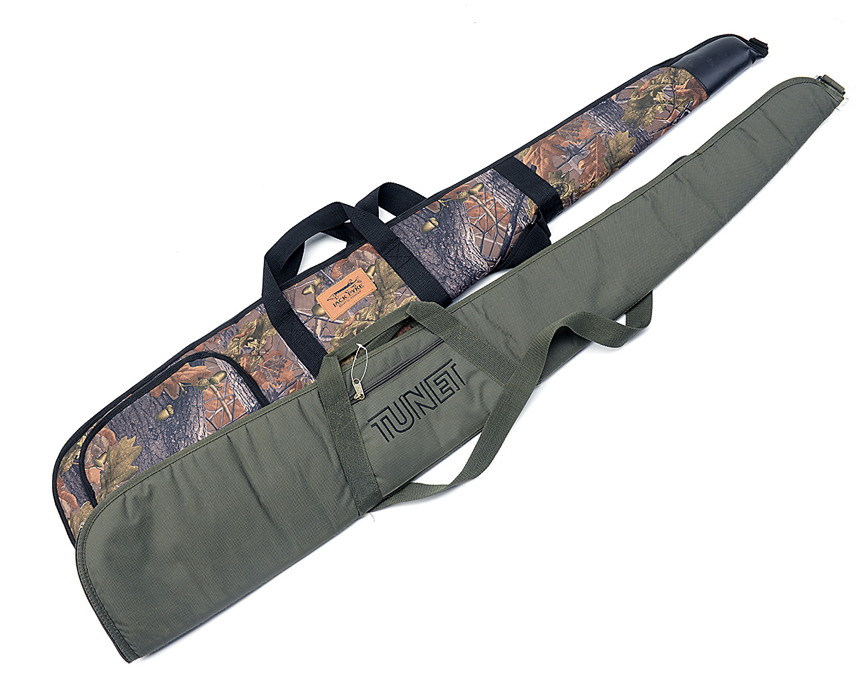 TWO UNUSED CANVAS GUNSLIPS, comprising of a green Tunet slip, a Jack Pyke camouflage gunslip