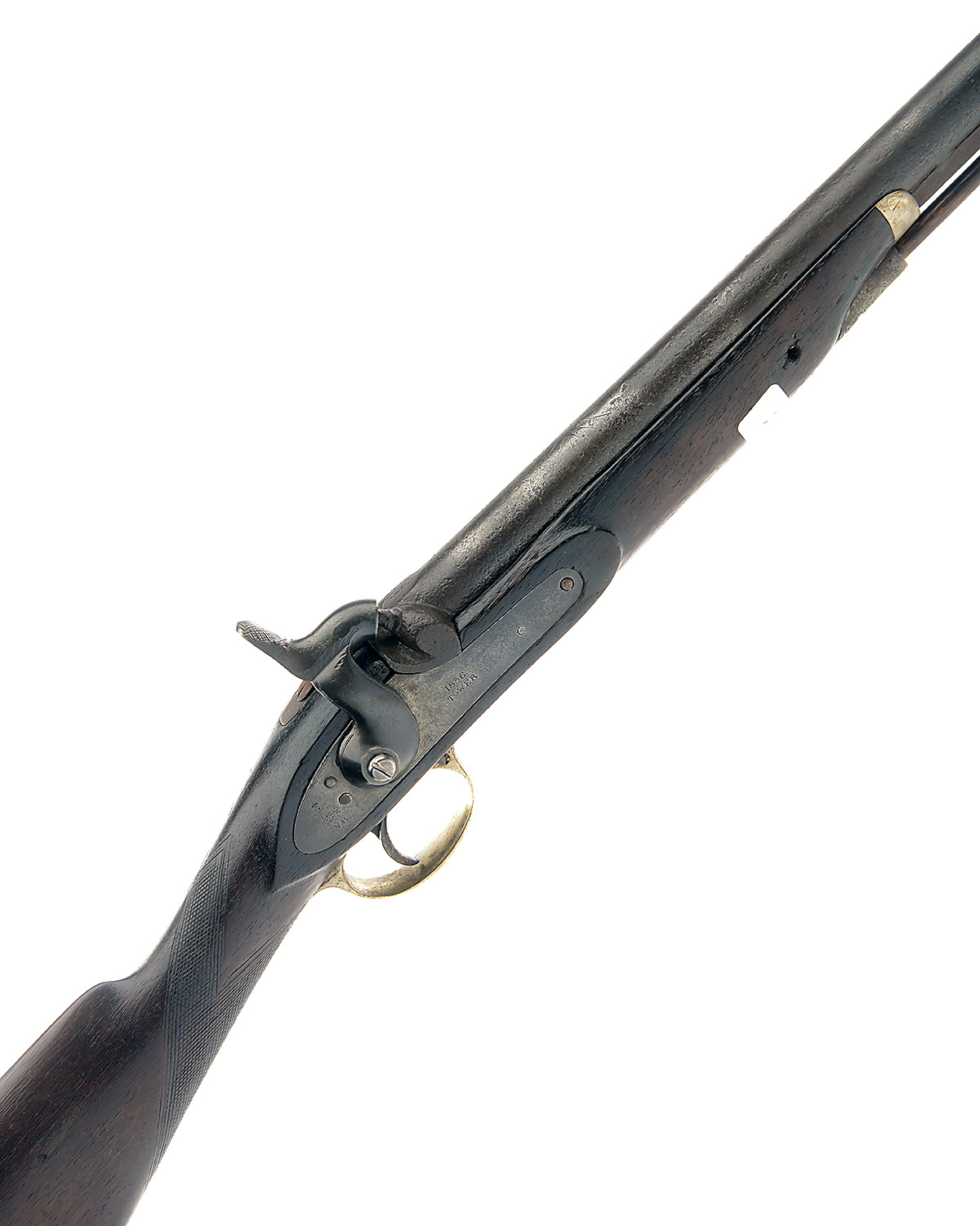 A 20-BORE PERCUSSION SPORTING-GUN SIGNED TOWER, MODEL FORAGE MUSKET, no visible serial number,
