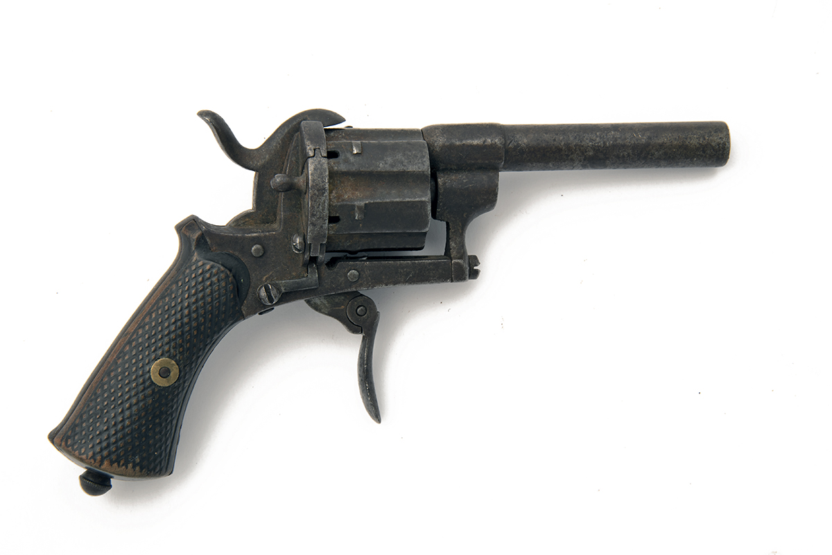 A 7mm DOUBLE-ACTION PIN-FIRE REVOLVER, UNSIGNED, no visible serial number,