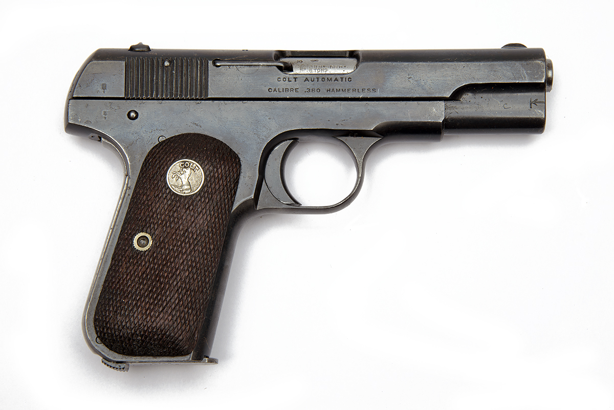 A .380 (ACP) SEMI-AUTOMATIC PISTOL SIGNED COLT, MODEL '1908 HAMMERLESS POCKET', serial no. 21618,