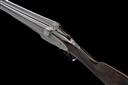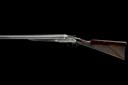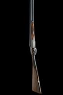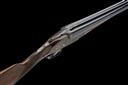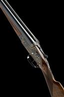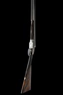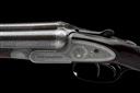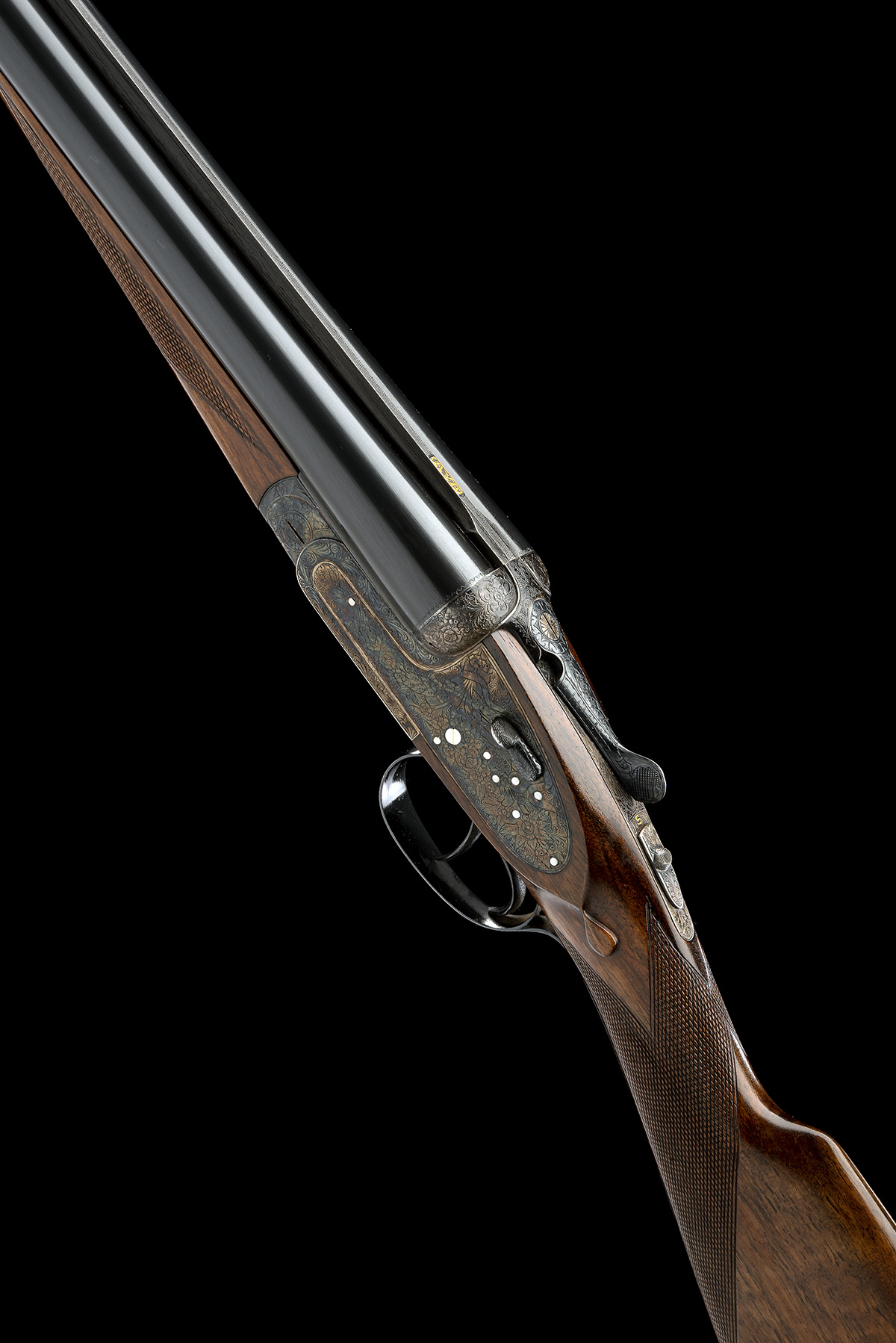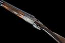 for 1963, 25in. nitro chopperlump barrels with matt Churchill-rib, 2 3/4in. chambers, bored approx. imp. cyl. and 1/4 choke, removable striker discs, automatic safety, hand-detachable lockplates, gold-inlaid cocking-indicators, articulated front trigger, rolled-edge triggerguard, floral and scroll engraving with ribbon details, retaining much original colour-hardening and finish, 14 1/2in. stock, weight 6lb. 8oz.