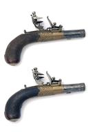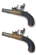 A GOOD PAIR OF 100-BORE FLINTLOCK MUFF-PISTOLS, no visible serial numbers,