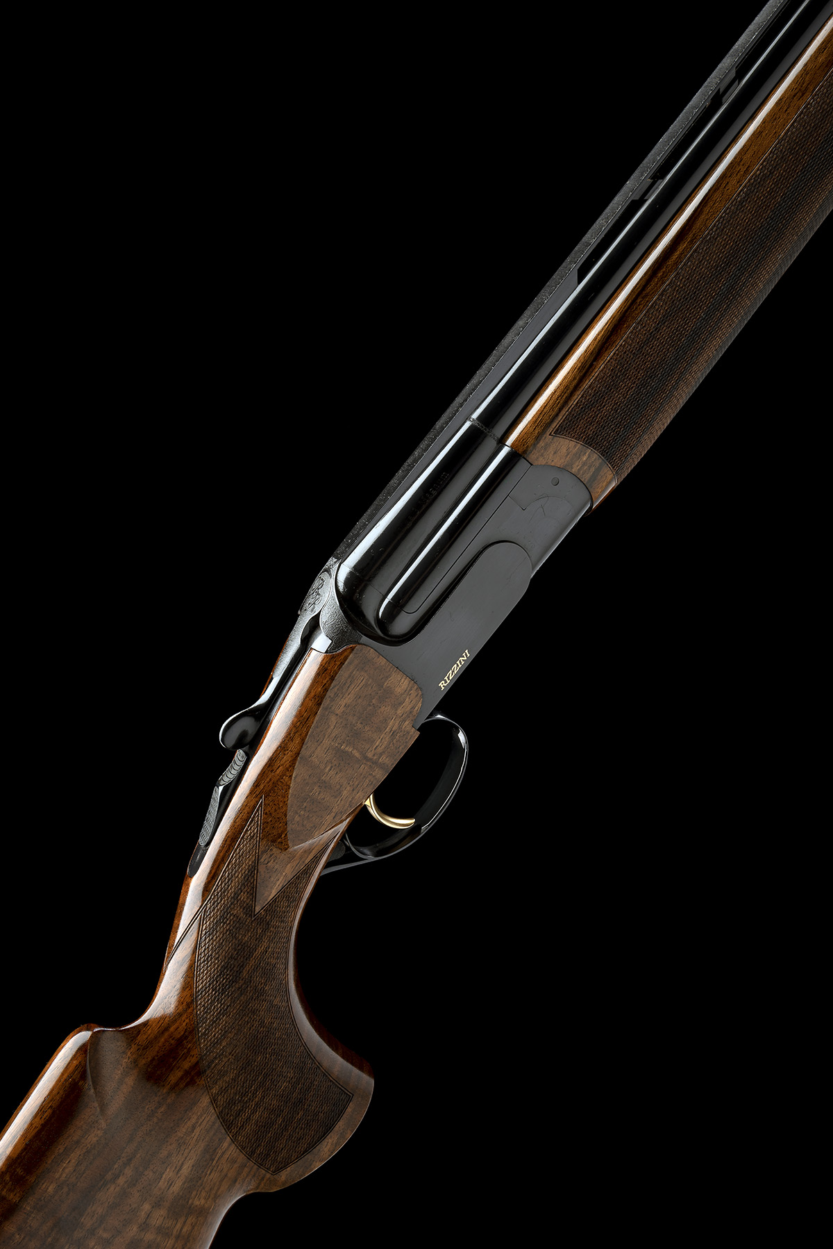 for 2016, 30in. high performance steel nitro reproved barrels (in 2022) with 11mm ventilated matt top-rib with high visibility fore-sight, 3in. chambers, protruding multichokes (with spares), hold-open toplever, manual safety with integral triggerplate release catch, gold-washed single trigger with triggerplate mounted selector switch, plain black action gold-inlaid with the makers name and model designation, 15 1/4in. pistolgrip stock with palm swell and including 1/2in. rubber recoil pad, weight 8lb. 8oz., in its universal case with paperwork
