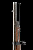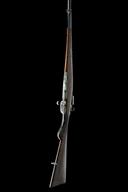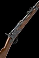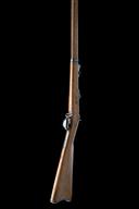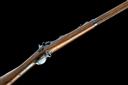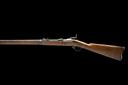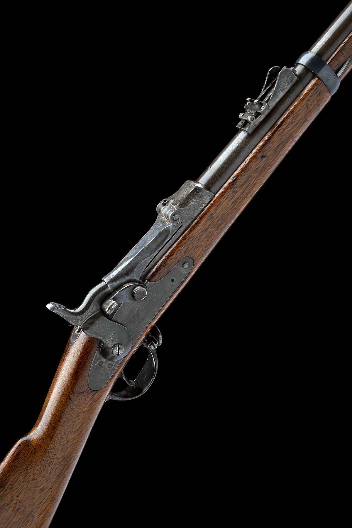 circa 1875, with 32 1/2in. barrel, block and blade fore-sight, elevating ladder rear-sight, flip-up dated breech, plain lock signed 'U.S. SPRINGFIELD' and stamped with the American Eagle device, walnut three-quarter stock with iron furniture, under-barrel iron clearing rod and fitted with swivels for sling