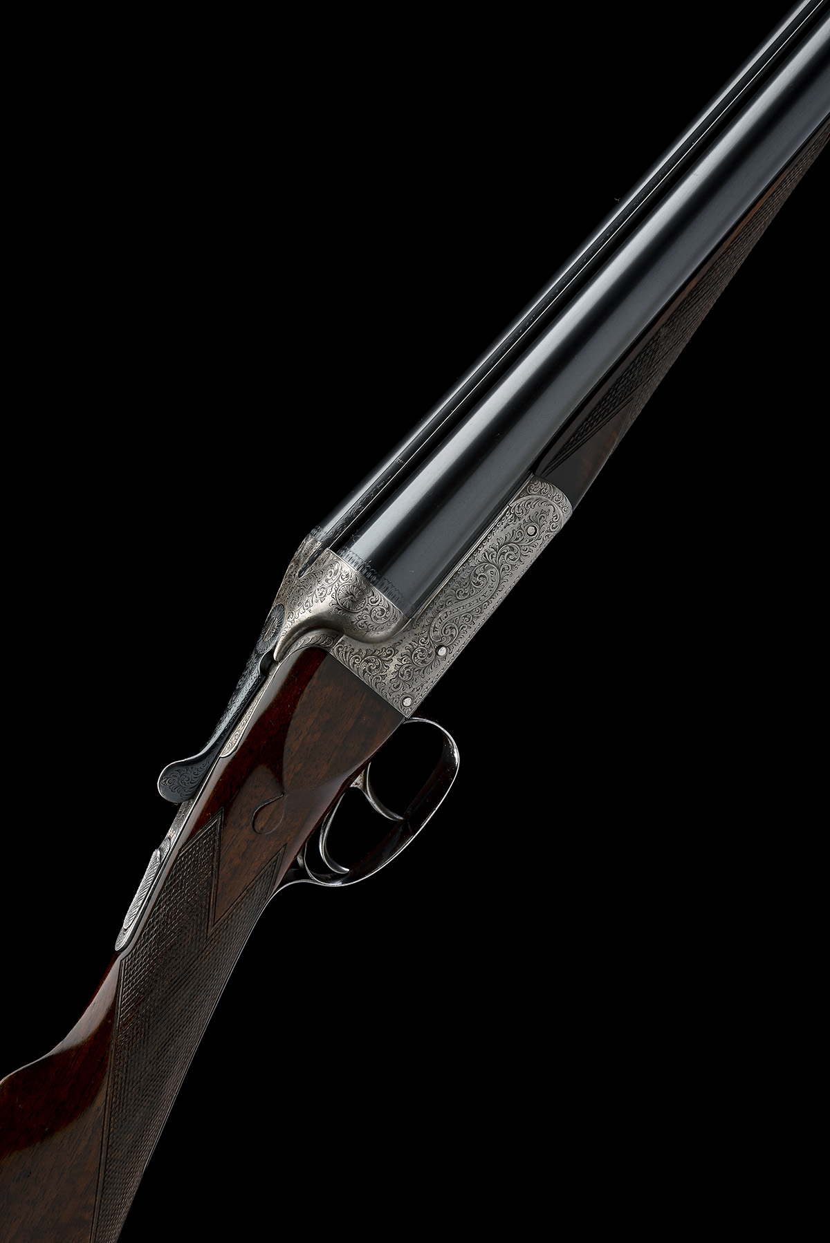 for 1906, 28in. nitro reproved barrels, the rib engraved 'W.J. JEFFERY & CO. 13. KING STREET ST. JAMES'S ST. LONDON.', 2 3/4in. chambers, bored approx. true cyl. and 3/4 choke, treble-grip action, automatic safety with white metal inlaid 'SAFE' detail, bold border and scroll engraving, retaining very slight traces of original colour-hardening, 15 3/8in. stock including 1 3/4in. wooden extension, weight 6lb. 11oz.