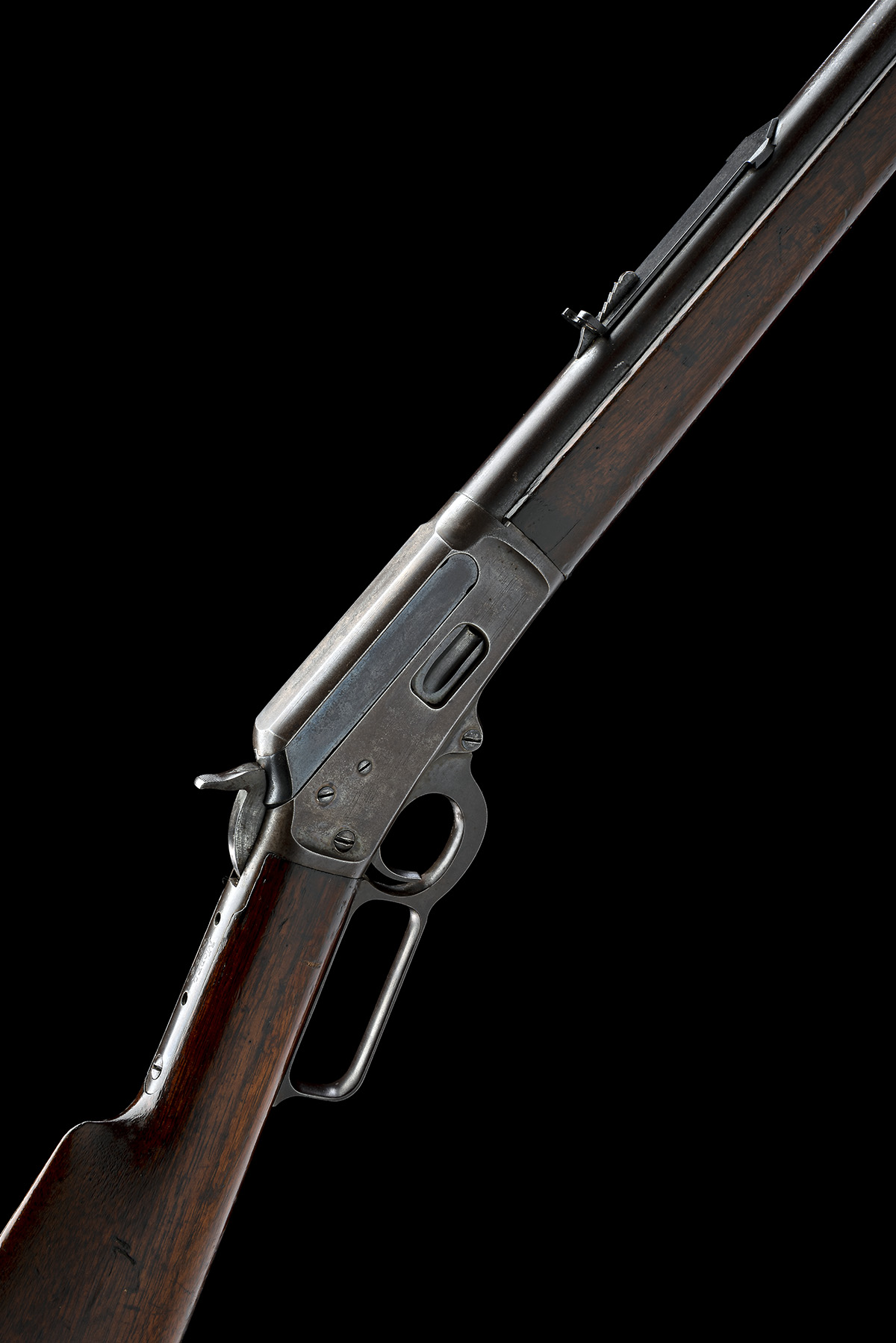 circa 1899, with round 24in. barrel signed on the top-flat 'MARLIN FIREARMS CO NEW-HAVEN C.T. U.S.A. PATENTED OCT 11 1887, APRIL 2 1889, AUGUST 1 1893', the breech-end with calibre marking, dove-tailed blade fore-sight, dove-tailed rear-sight, solid (strong traces of colour hardening) marked on the top 'MARLIN SAFETY', provision for peep-sight to top-tang (sight absent), the tang also with model designation '1894', walnut straight-hand butt-stock with chequered hard rubber shotgun heelplate, squared finger-lever, plain walnut half-fore-end and full length under-barrel magazine-tube, strong amount of original finish throughout
