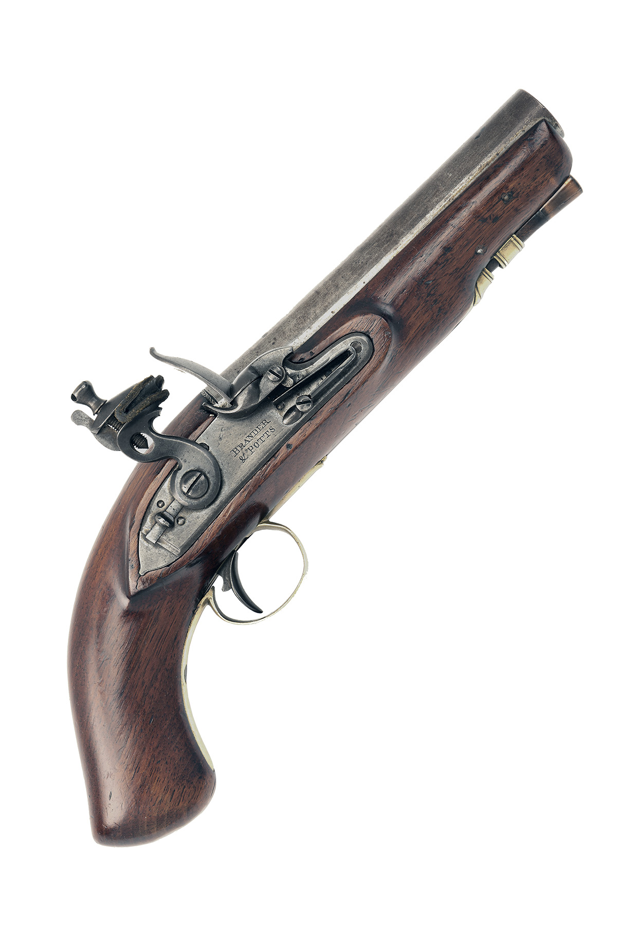 A .65 FLINTLOCK TRAVELLING PISTOL BY BRANDER & POTTS, CIRCA 1820, no visible serial number,
