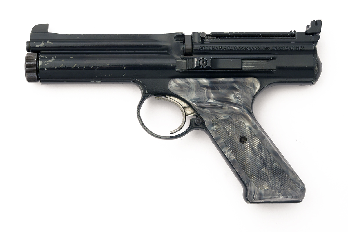 A RARE .177 (BB) CO2 AIR-PISTOL BY CROSMAN, MODEL 677 PLINK-O-MATIC, serial no. L31229,