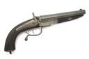 A .577 (BOXER) DOUBLE BARRELLED HAMMER HOWDAH PISTOL SIGNED ARMY & NAVY, no visible serial number,