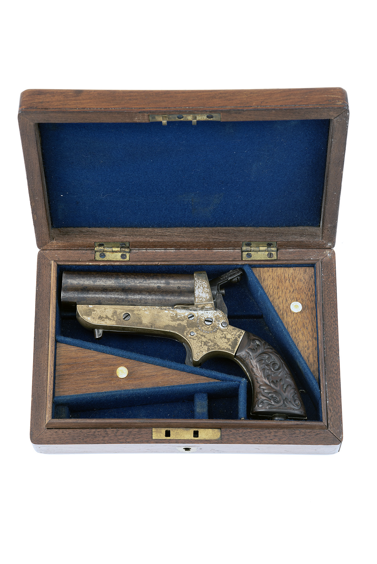 Provenance: The Birmingham firm of Tipping & Lawden manufactured these four barrel pistols from 1860 under licence from Christian Sharps, the design was protected in Britain by British patent No 207 of 22 Jan. 1859