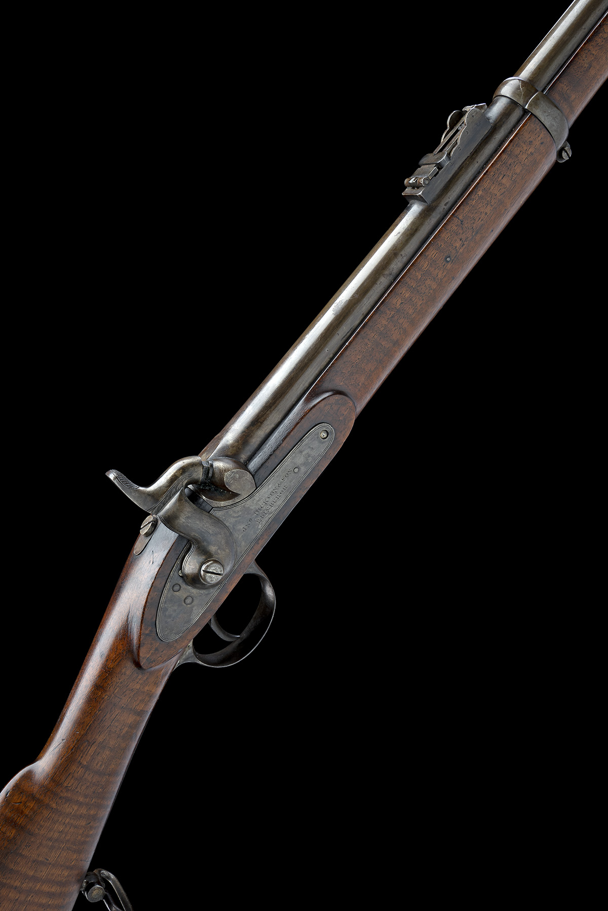 A .577 PATTERN 1860 TWO BAND PERCUSSION VOLUNTEER RIFLE SIGNED JNO. DICKSON, EDINBURGH, serial no CA86,