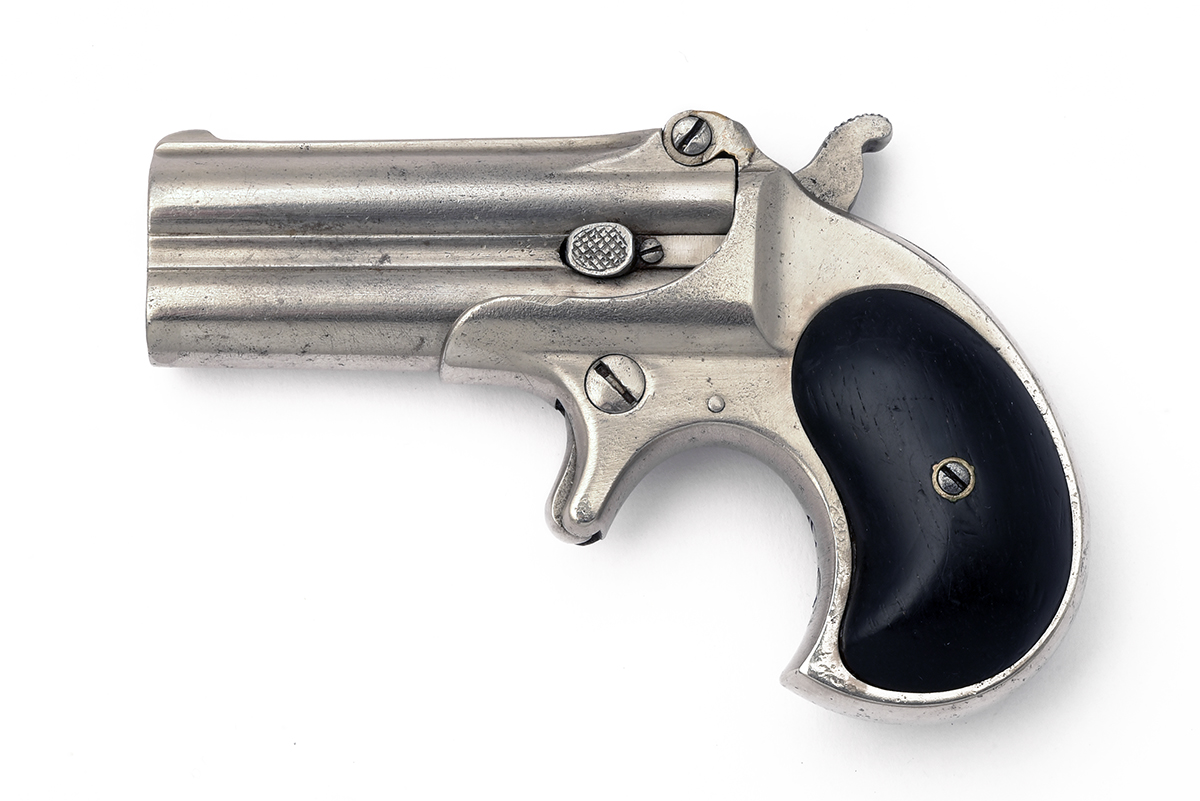 Provenance: This is a fairly early Remington Derringer, production of this variation started in 1868 with a total production of 14,000. The Remington double Derringer is probably the best knowN of all American Derringers produced 1866 to 1935, total production of all model and variations 150,000.