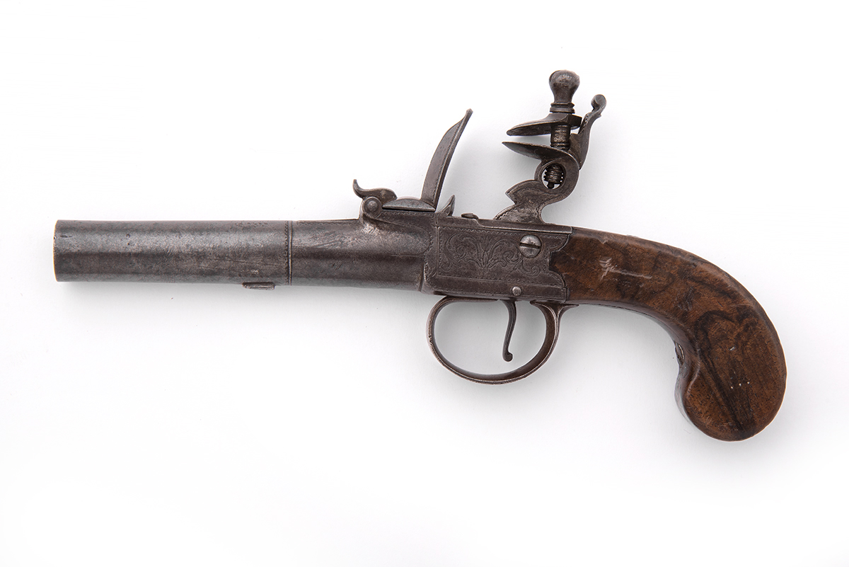 A 50-BORE FLINTLOCK BOXLOCK TURN-OFF POCKET-PISTOL SIGNED I. PROBIN, no visible serial number,