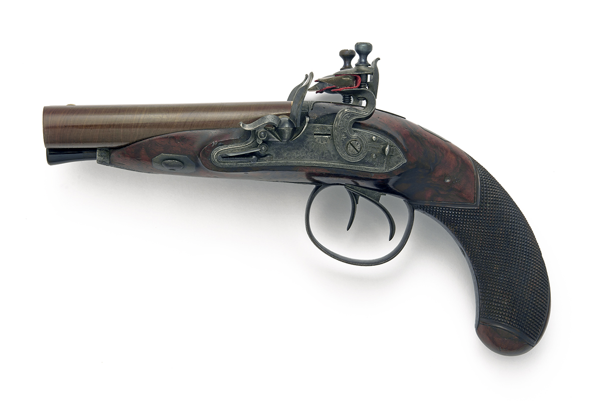 A FINE 28-BORE FLINTLOCK DOUBLE-BARRELLED CARRIAGE-PISTOL, no visible serial number,