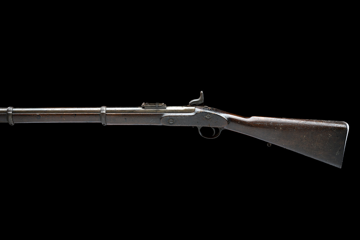 Provenance: This rifle is one of 8000 made at the Enfield factory for extensive troop trials held between 1864 and 1867, issues were made to a number of regiments. The results were not impressive, the Whitworth was not a practical rifling system for general issue and the adoption of breech-loading signaled its end. Most of these Enfield troop trials were sold off as surplus in the Tower sales in the early 1870's, quantities being purchased by dealers such as Robert Hughes, then modified for commercial sale. Many were shipped to South Africa