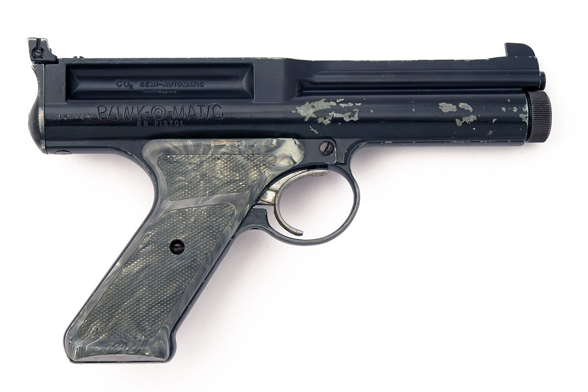 A RARE .177 (BB) CO2 AIR-PISTOL BY CROSMAN, MODEL 677 PLINK-O-MATIC, serial no. L31229,