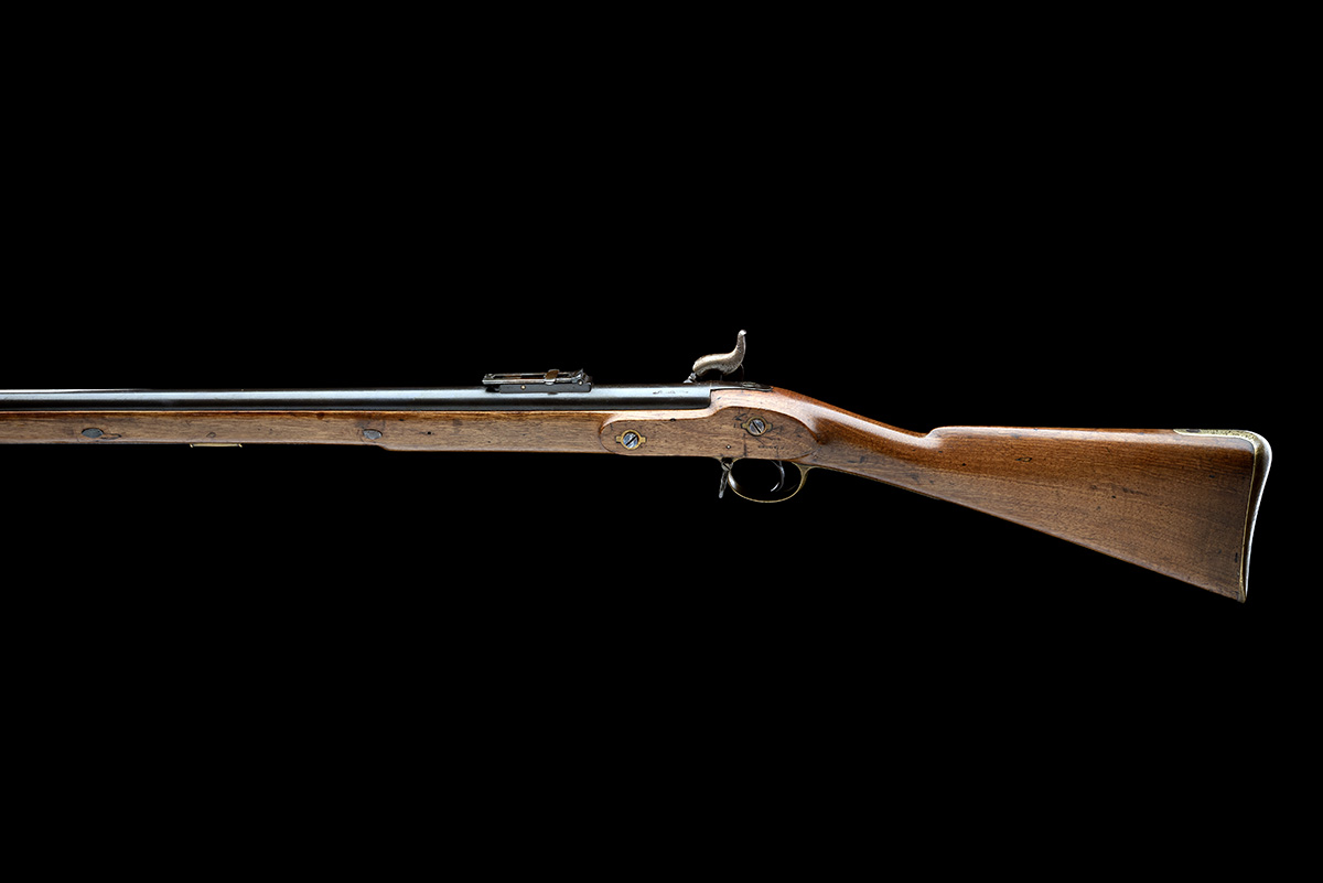 Provenance: The Pattern 1851 Minie rifle was the first rifled longarm intended for general issue to the entire British infantry, only 35,000 were made between 1852 and 1855 and the survival rate is very small. Almost all were issued to regiments in the Crimea. This example is marked to one of the premier regiments of the British Army, the 1st Battalion Coldstream Guards who served with distinction during the Crimean War, gaining the battle honours Alma, Inkerman and Sevastopol