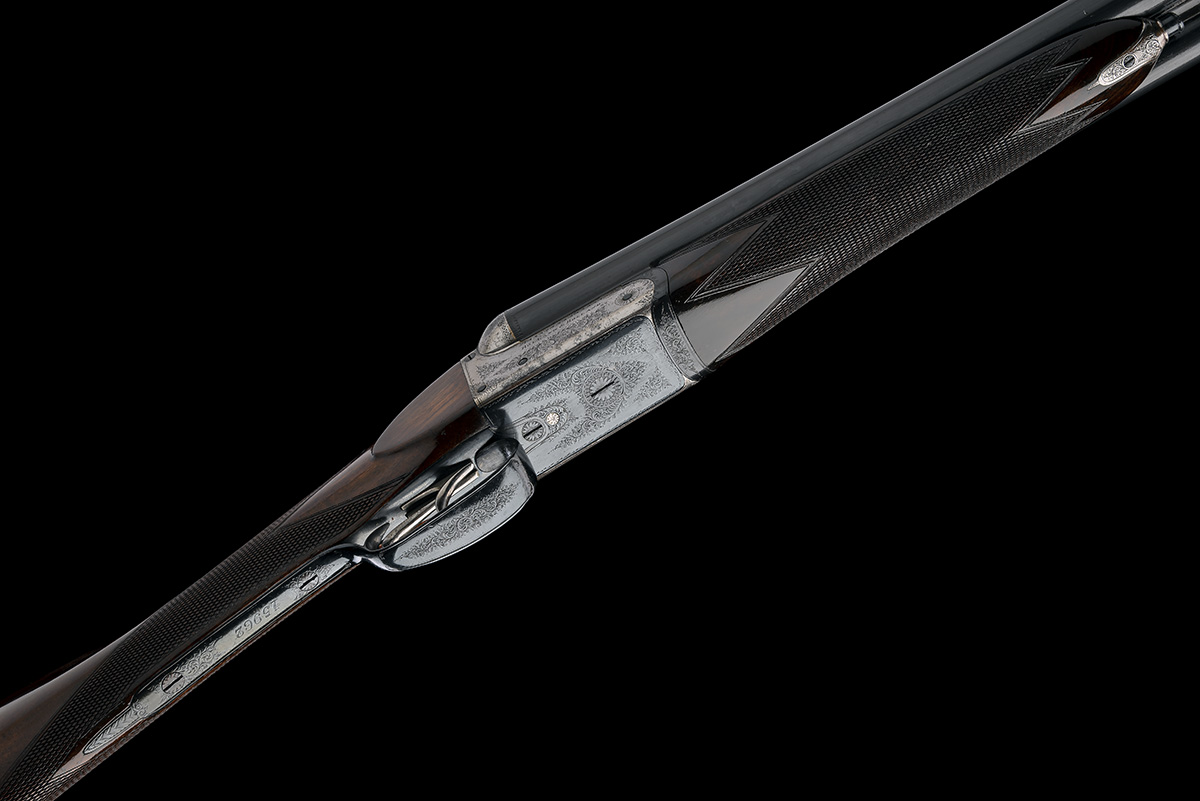 for 1920, 28in. nitro reproved (in 2022) barrels with file-cut sight rib, folding leaf sights marked 50 and 100, bead fore-sight, the tubes engraved 'HOLLAND & HOLLAND. 98 NEW BOND STREET, LONDON. "NITRO - PARADOX"', 2 1/2in. chambers, Col. G. Vincent Fosbery V.C. patent rifled chokes, patent no. 7568 of 1885, T.W. Webley and T. Brain patent screw grip action by Webley & Scott, patent no. 3053 of June 28th 1882, removable striker discs, automatic safety with brass 'SAFE' plaque, intercepting sears, border and scroll engraving, the sides engraved 'HOLLAND & HOLLAND', brushed bright and reblued finish overall, 14 1/2in. stock (repair at toe) including steel buttplate, sling swivels, weight 7lb. 4oz.