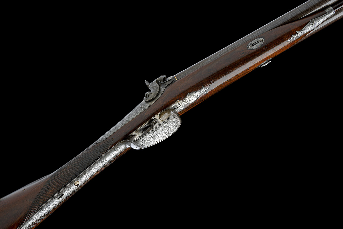 A 16-BORE PERCUSSION DOUBLE-BARRELLED SPORTING-GUN SIGNED MABSON, LABRON & MABSON, no visible serial number,