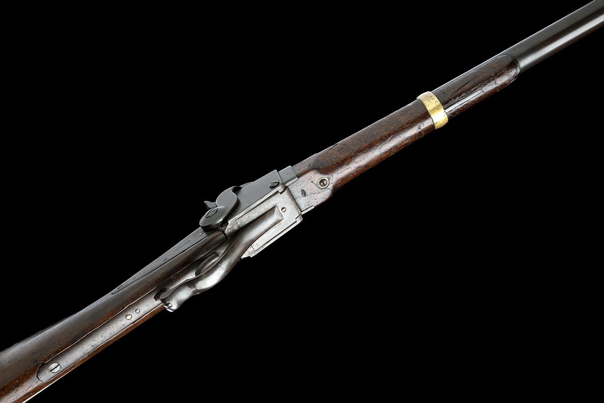 Provenance: This pattern of carbine was designed by Ebenezer T. Starr, and in U.S. Government tests was rated better than the Sharps. Over 20,000 were supplied to the army between1862 to 1865. They were widely issued and saw considerable service in action against the Confederates. Quantities were sent to garrisons in the West and issued to various State militia and volunteer units, the most famous or infamous being the Colorado volunteers under the command of Colonel John M. Chivington, a Methodist minister. It was this Colonel Chivington who with 700 volunteers attacked the camp of Chief Black Kettle, a peaceful group of Native Americans under the protection of Fort Lyon and Major Wynkoop. It appears Wynkoop conspired with Chivington to attack the camp of Black Kettle and his followers, at the end of the day 200 Native Americans lay dead mostly women and children. The event went down in history as the Sand Creek massacre and the unit responsible carried mainly Starr carbines