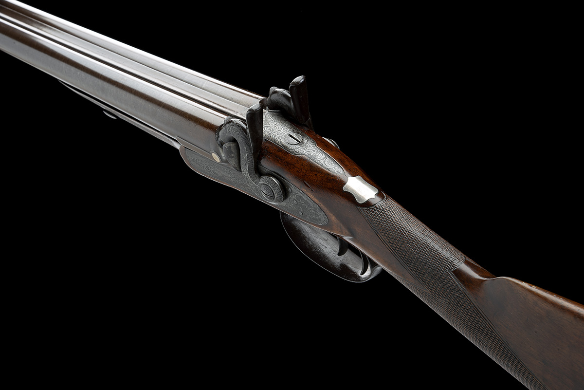 A CASED 14-BORE PERCUSSION DOUBLE-BARRELLED SPORTING-GUN, serial no. 1737,