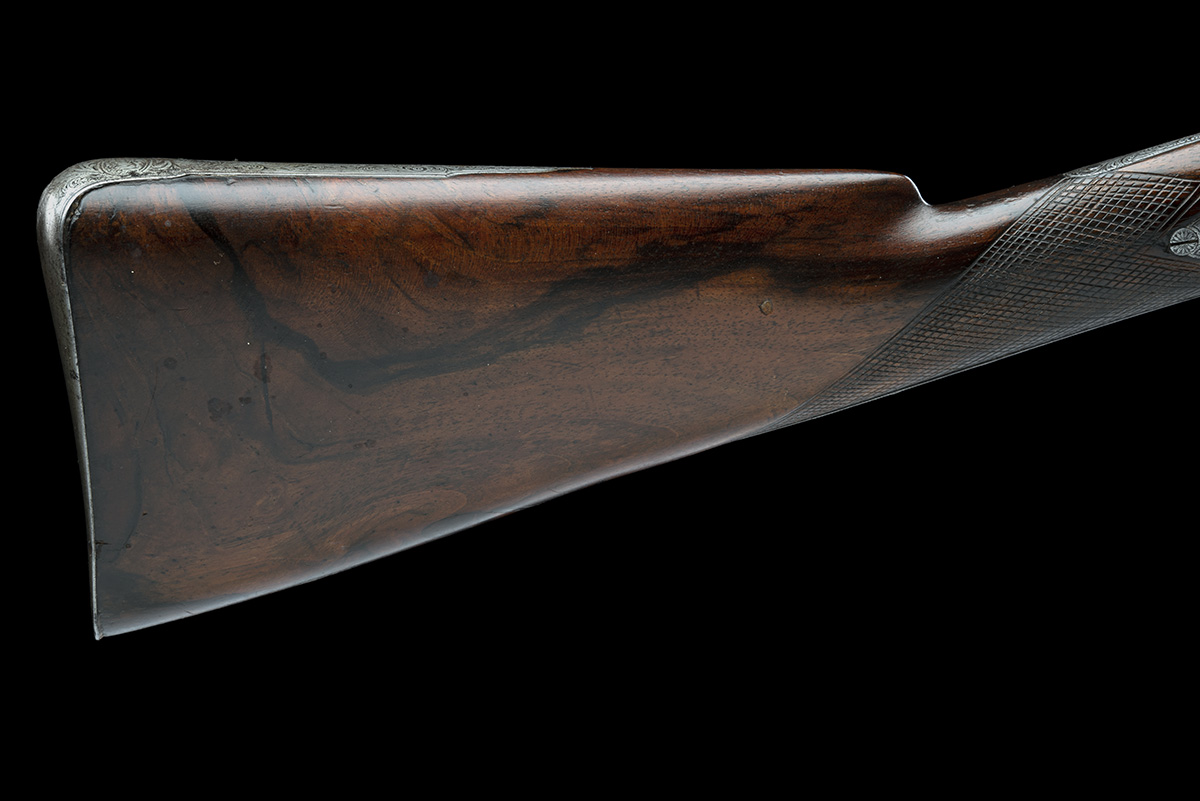 A 16-BORE PERCUSSION DOUBLE-BARRELLED SPORTING-GUN SIGNED MABSON, LABRON & MABSON, no visible serial number,