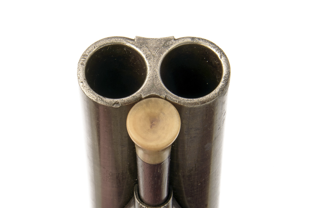 A GOOD .65 DOUBLE-BARRELLED FLINTLOCK OFFICERS PISTOL BY W. PARKER CIRCA 1810, no visible serial number,