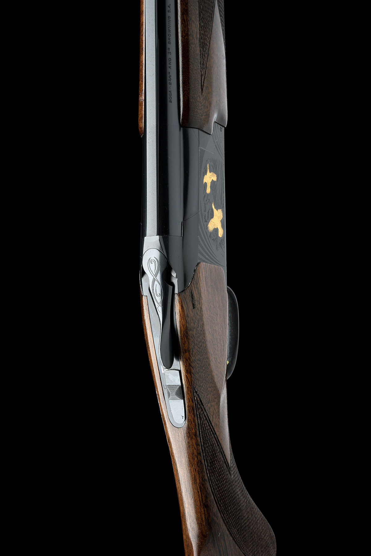 dated 2016, 28in. nitro barrels with 6mm ventilated matt top-rib, 3in. chambers, multichokes (no spares), hold-open toplever, automatic safety with integral barrel selector switch, gold-washed trigger, engraved with gold-highlighted scenes of partridge in flight over their naturalistic habitat surrounded by geometric designs, blacked finish, 14 1/4in. semi-pistolgrip stock including 1in. rubber recoil pad, weight 6lb. 7oz., in its makers universal case