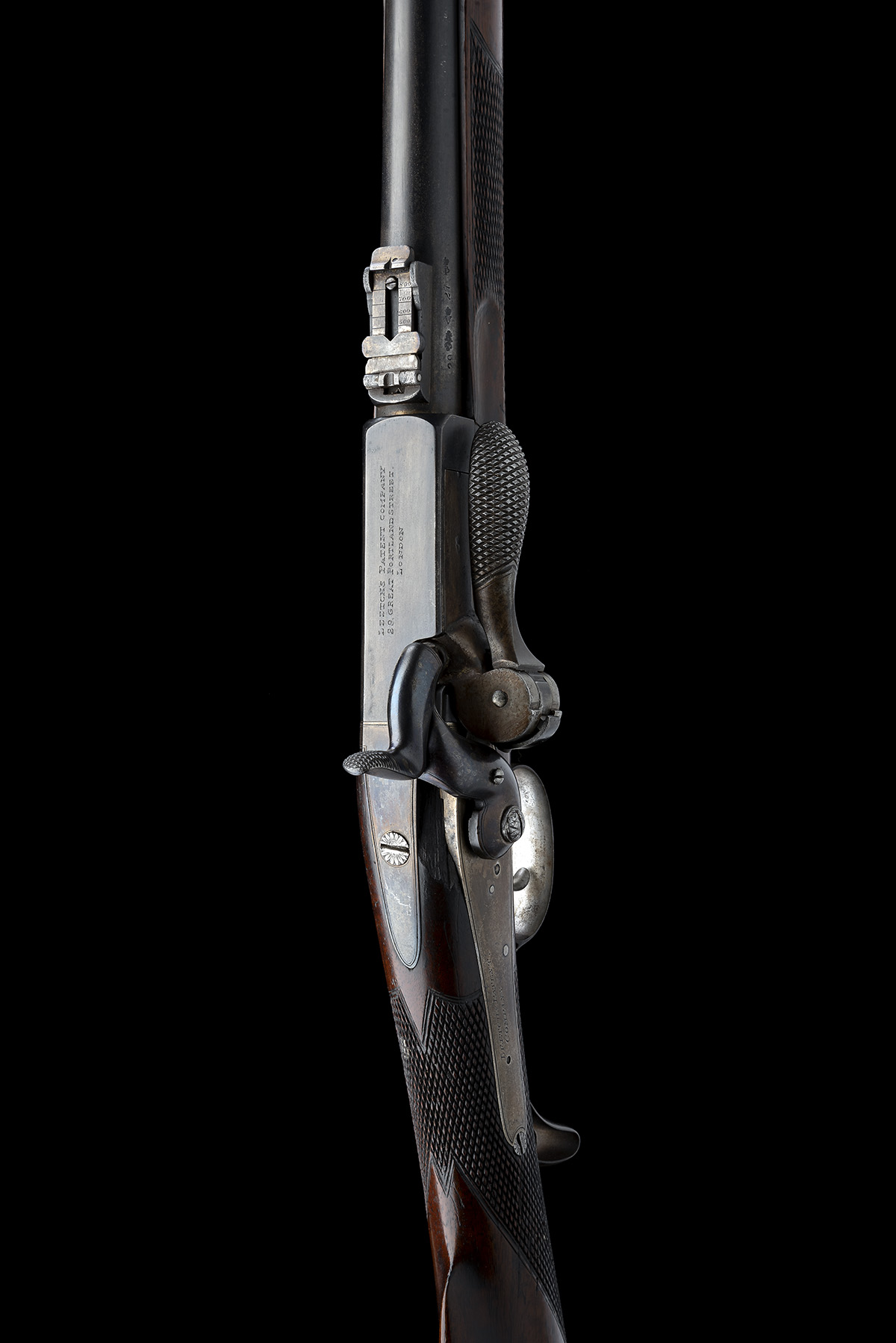 with 15in. London proofed barrel rifled with three grooves, block front-sight with dovetailed blade, small carbine pattern 1860 style ladder rearsight, the action top signed 'LEETCH 'S PATENT COMPANY / 29 GREAT PORTLAND STREET / LONDON', back-action lock engraved 'LEETCH'S PATENT / COMPANY', iron mounted full walnut stock with scroll trigger-guard, chequered wrist and fore-end, the barrel secured by just one band. A rare collector's gun.