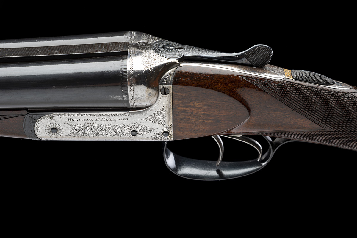 for 1920, 28in. nitro reproved (in 2022) barrels with file-cut sight rib, folding leaf sights marked 50 and 100, bead fore-sight, the tubes engraved 'HOLLAND & HOLLAND. 98 NEW BOND STREET, LONDON. "NITRO - PARADOX"', 2 1/2in. chambers, Col. G. Vincent Fosbery V.C. patent rifled chokes, patent no. 7568 of 1885, T.W. Webley and T. Brain patent screw grip action by Webley & Scott, patent no. 3053 of June 28th 1882, removable striker discs, automatic safety with brass 'SAFE' plaque, intercepting sears, border and scroll engraving, the sides engraved 'HOLLAND & HOLLAND', brushed bright and reblued finish overall, 14 1/2in. stock (repair at toe) including steel buttplate, sling swivels, weight 7lb. 4oz.
