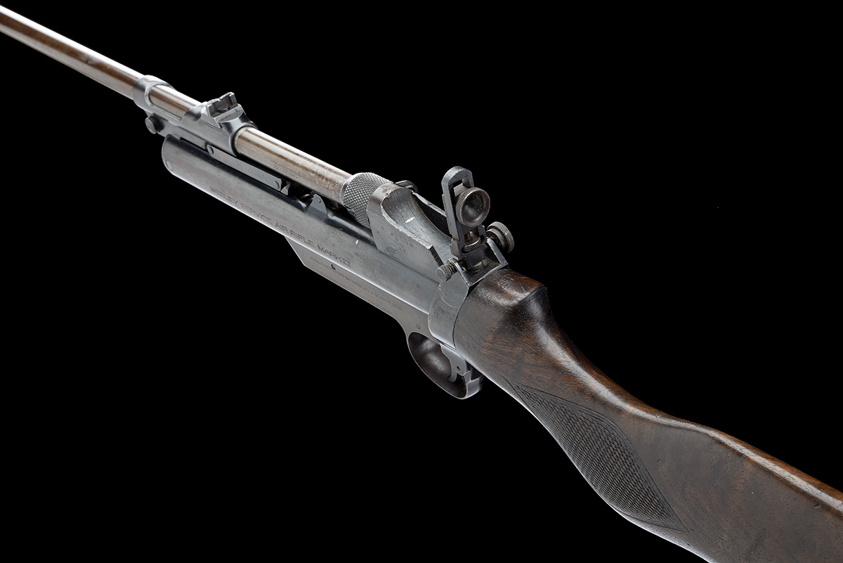 circa 1934, with matching number 25 1/2in. barrel fitted with a ramp and blade fore-sight, push-button barrel release, elevating dove-tailed rear-sight to the barrel cradle, rotating bolt-handled barrel-lock, second style peep-sight to rear, blued air-chamber with model details and patents, anti bear-trap device, trigger unit with makers name and address, swinging safety catch, walnut semi pistol-grip butt-stock, ribbed horn heel-plate, the whole retaining a strong amount of original blued finish