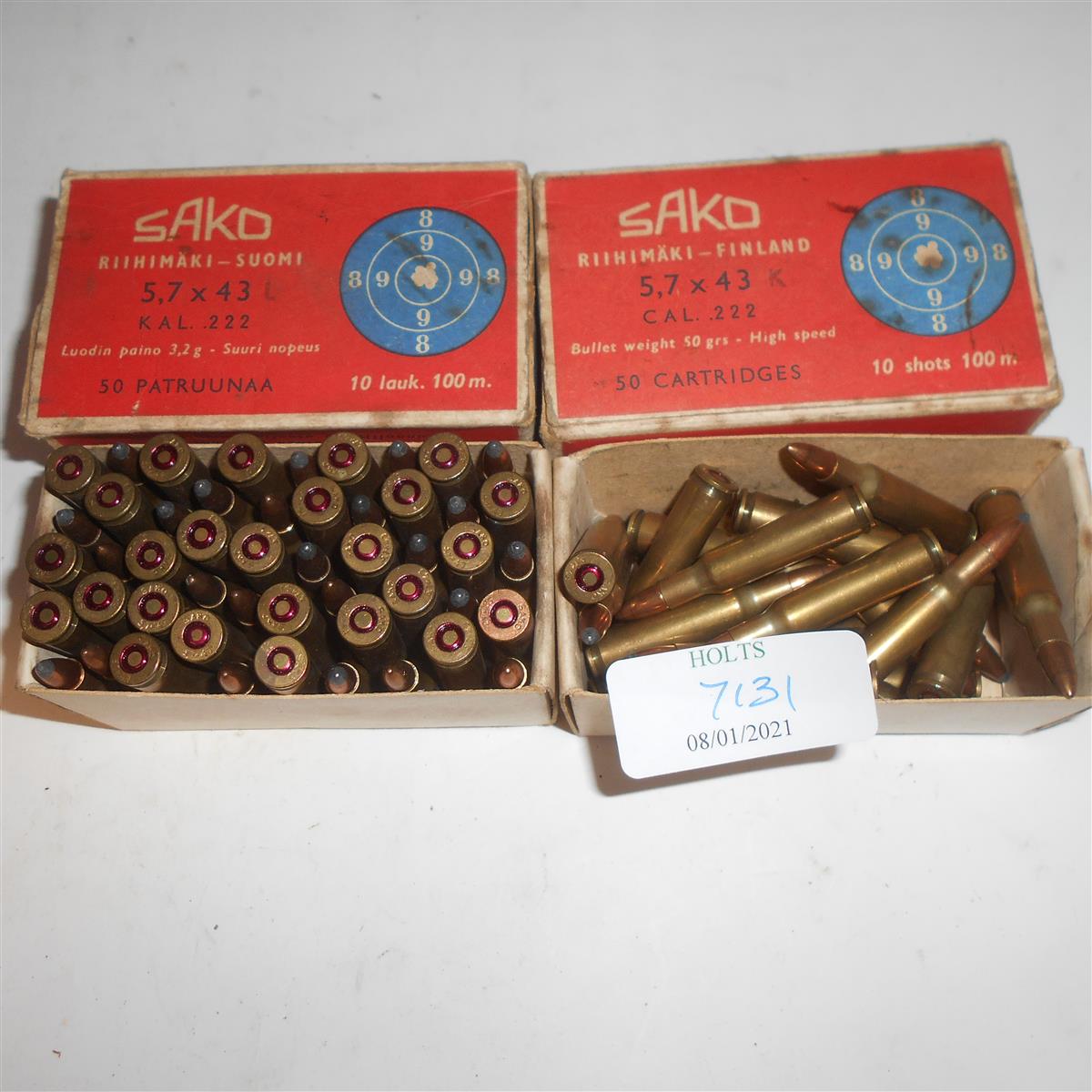 76 ROUNDS .222 SAKO AMMUNITION, MIXED SOFT POINT & 50grn FMJ Please be advised that ammunition, primers, primed cases, blanks and percussion caps cannot be sent to you by post or carrier. If you wish you can book a collection at one of our regional valuation days or collect from our offices at PE31 6HA in Norfolk
