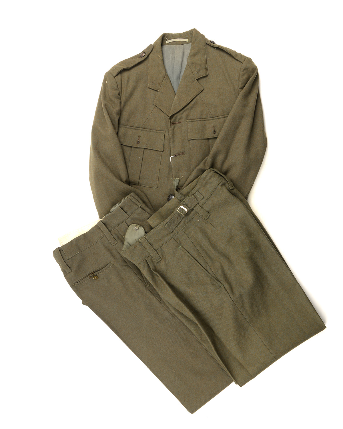 A No. 2 DRESS UNIFORM FOR THE ROYAL MARINES, jacket size approx. size 32in., two pairs of trousers size 32in. & 25in.