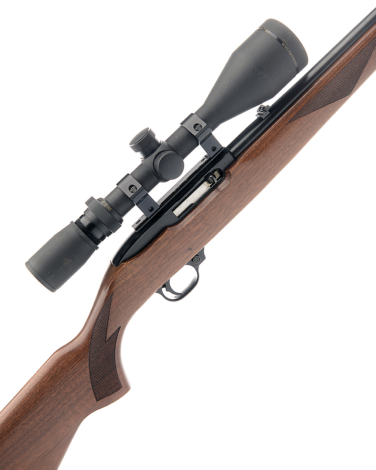 RUGER .22 L.R. 'MODEL 10/22' SELF-LOADING SPORTING RIFLE, serial no. 248-04909, 18 7/8in. nitro barrel, threaded for sound moderator, fore-sight missing, folding leaf rear-sight, fitted with a Simmons Whitetail 3.5-10x50 telescopic sight, manual safety, detachable magazine, pistolgrip stock, sling swivels