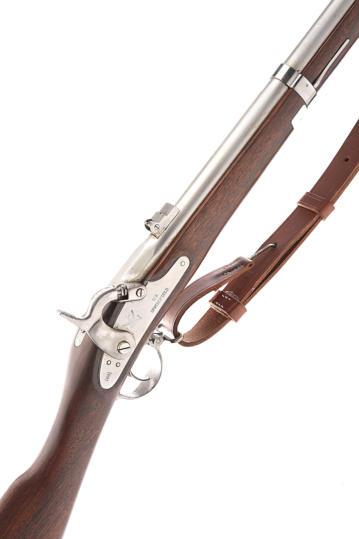 A REPRODUCTION .58 PERCUSSION RIFLE WITH FILM PROVENANCE, MODEL '1861 SPRINGFIELD', serial no. S11401, used in the filming of 'Cold Mountain' starring Nicole Kidman and Jude Law, with brushed bright 40in. sighted barrel, brushed bright lock, walnut full-stock and with brushed bright furniture, fitted with a leather sling, appearing little used, with provenance letter from Zorg Limited, Film Armourers