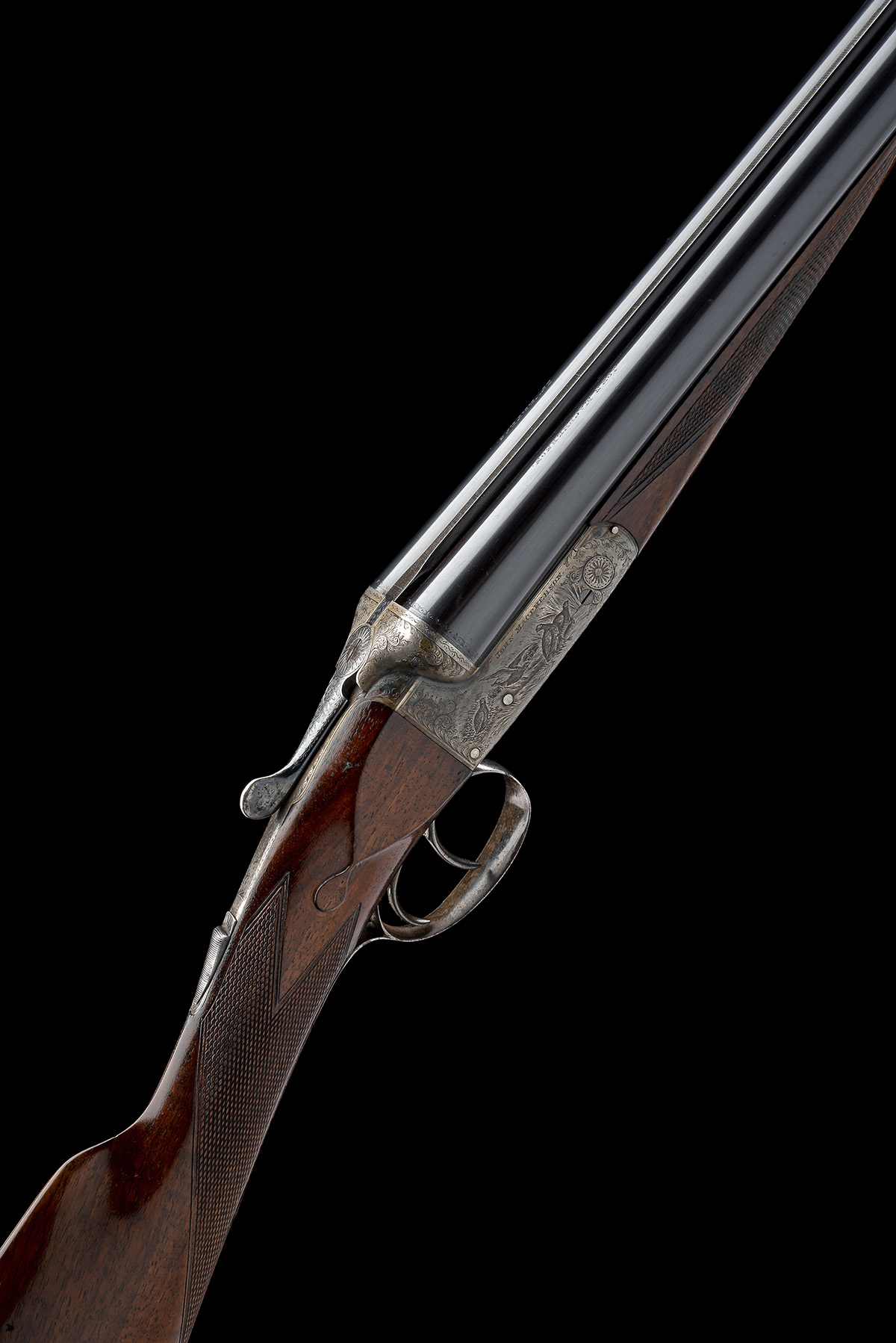 circa 1945, 26in. nitro barrels with Churchill-type rib, tubes engraved 'JOHN MACPHERSON. INVERNESS.', 2 1/2in. chambers, bored approx. imp. cyl. and 3/4 choke, treble-grip action, automatic safety with gold-inlaid 'SAFE' detail, border and partial scroll engraving surrounding vignettes of game, retaining traces of original colour-hardening and finish, 14 1/2in. stock (escutcheon removed) including 1in. rubber recoil pad, weight 6lb. 7oz.