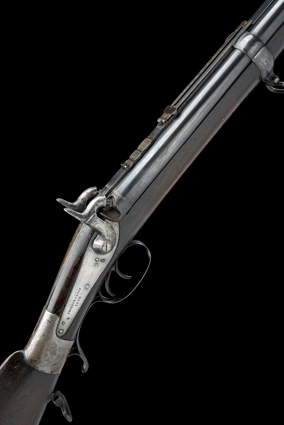 Provenance: This pattern of rifle was designed by Brigadier General John Jacob, Commandant of the famous Scinde Irregular Horse and Commissioner for Scinde Province on the southern sector of the turbulent North West Frontier, whose achievements were the stuff of legend. In 1858 he was authorised to raise an infantry regiment as part of the Scinde Field Force, this rifle was specially made for issue to his regiment. Jacobs died in 1858 and the regiment named Jacob's Rifles in his honour. Rifles of this type were made between 1859 and 1862, total production is estimated at between 1000 and 1200. In service they proved a failure, and withdrawn for service